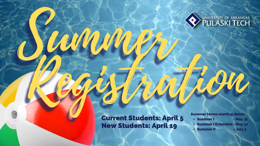 SUMMER 2019 IMPORTANT REGISTRATION DATES Summer Admissions Application Deadline Summer I and Summer Extended. - Pulaski Technical College is registering students for the fall semester until August 7. Select your entry year to view course equivalency documents.